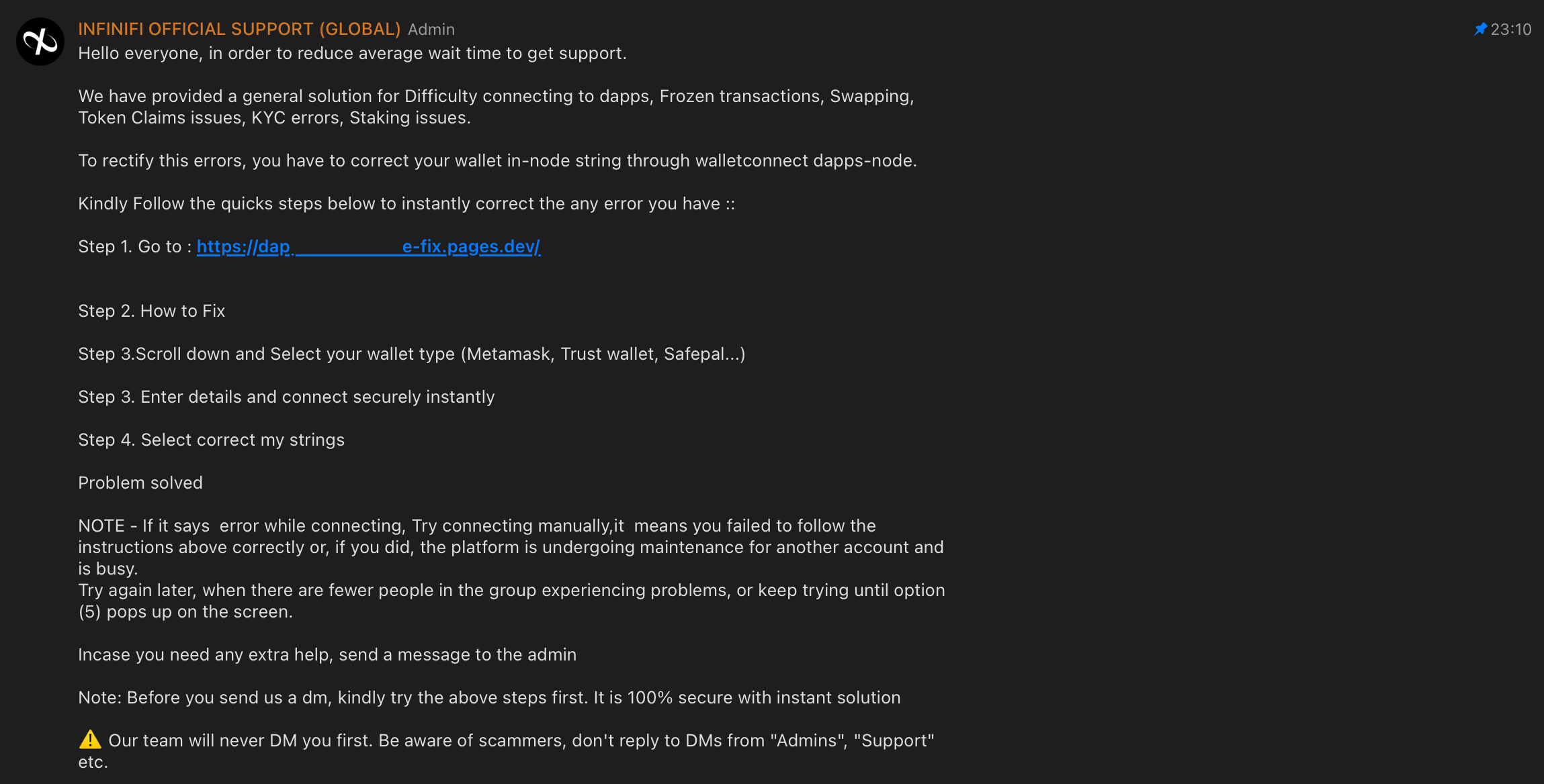 As I mentioned, they're obsessed with the no dm thing - probably because it actually works on web3 newbies coming for help.