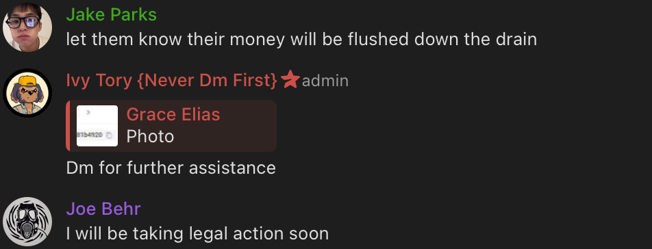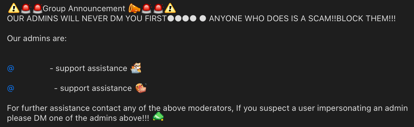 Anyway, chats like these would rely heavily on messages asking users to DM the admins for support - like this one: