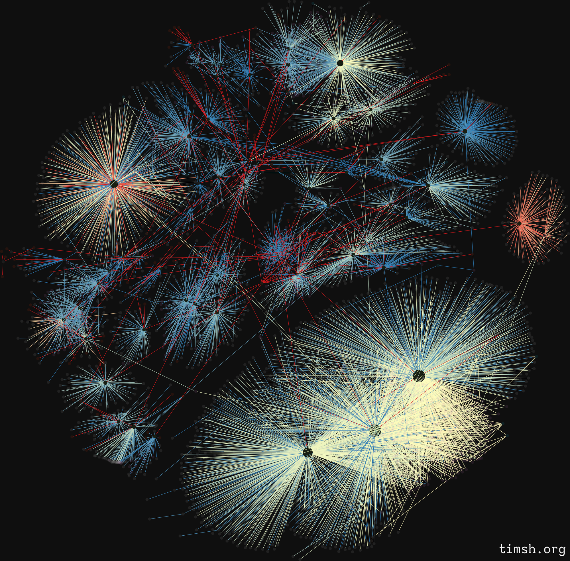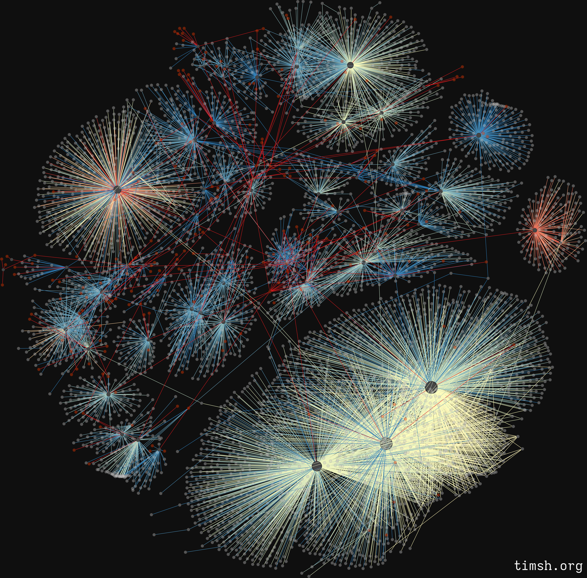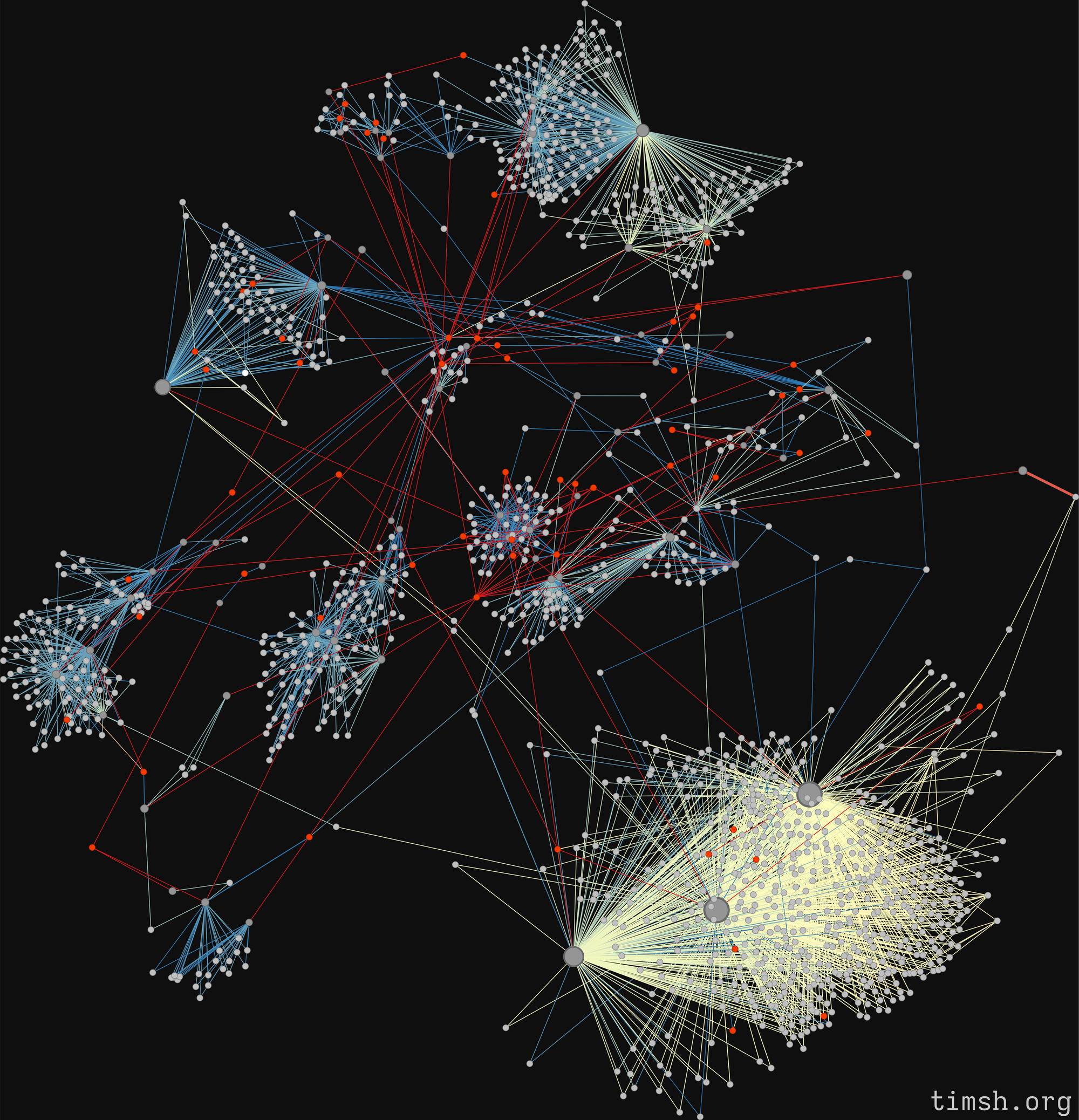 You might've already noticed a bunch of red strings closer to the network centre - these are the admins and most old, active users.
