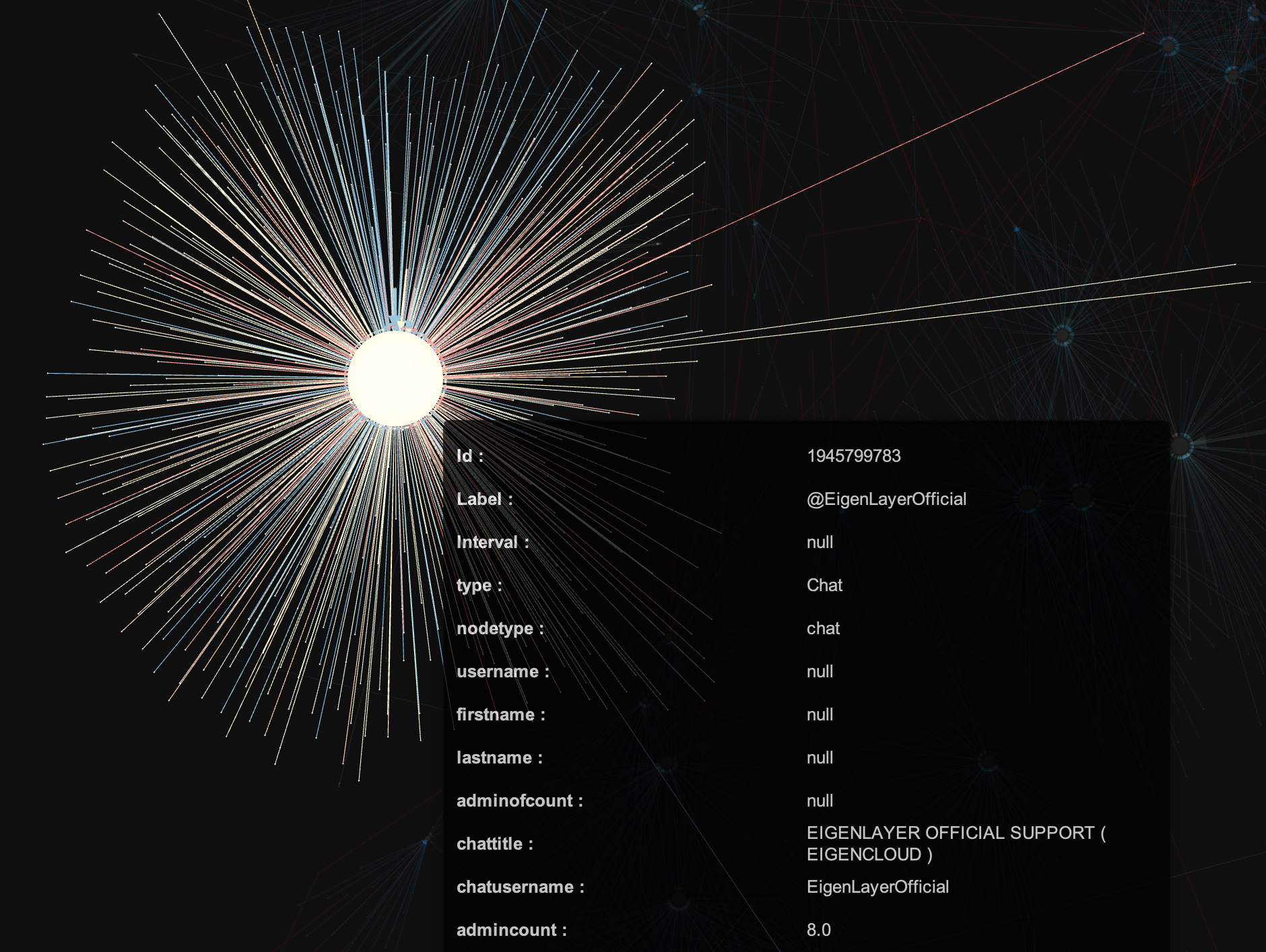 Let's start from the "reddest" part on the right - that is the oldest chat present in my dataset, @etherfi_OfficialGroup: