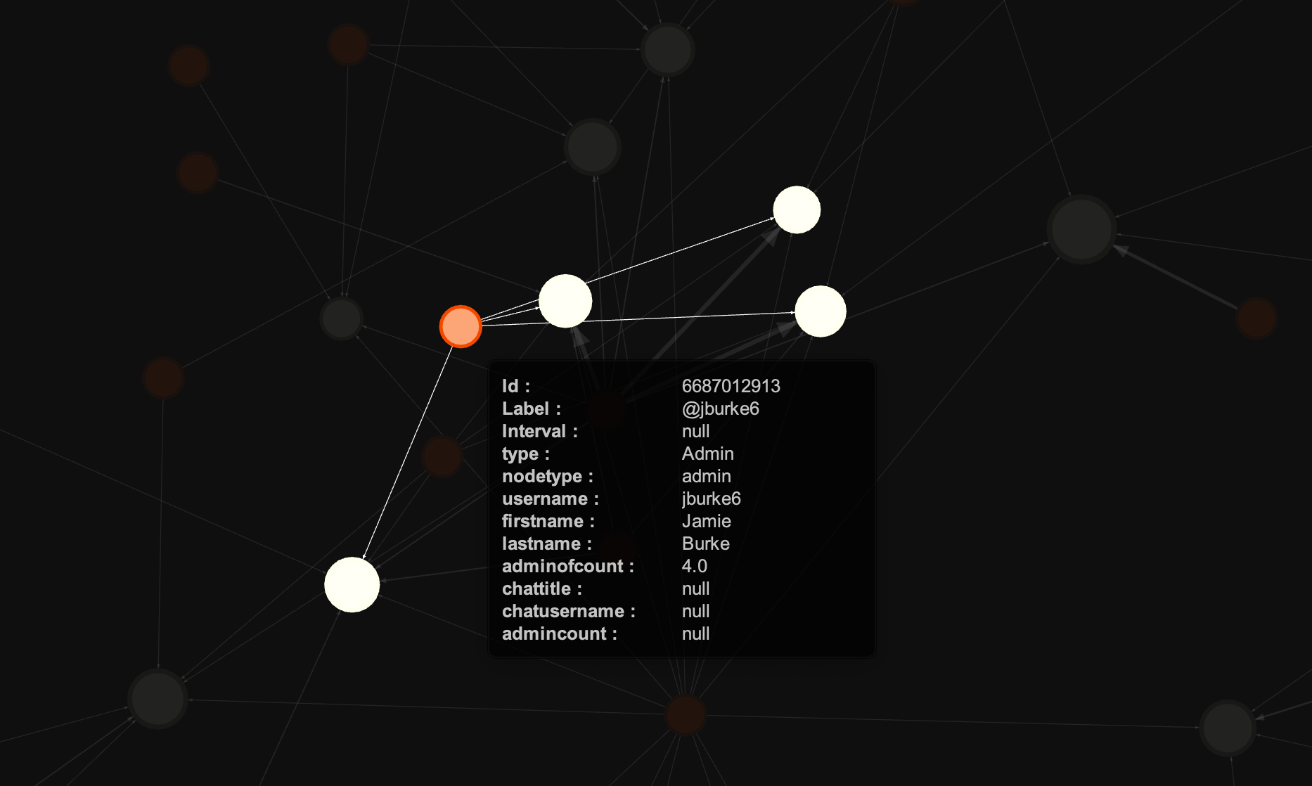 - admins are represented as small red nodes