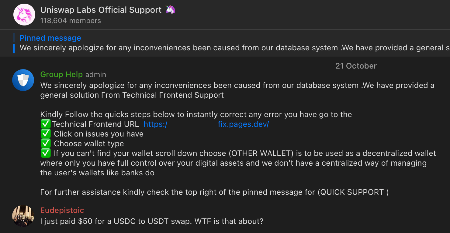 In case you want any help or suggestions on fighting the existing chats or other forms of scam made in the name of your protocol - reach out and I'll try to help or bring in others who will.