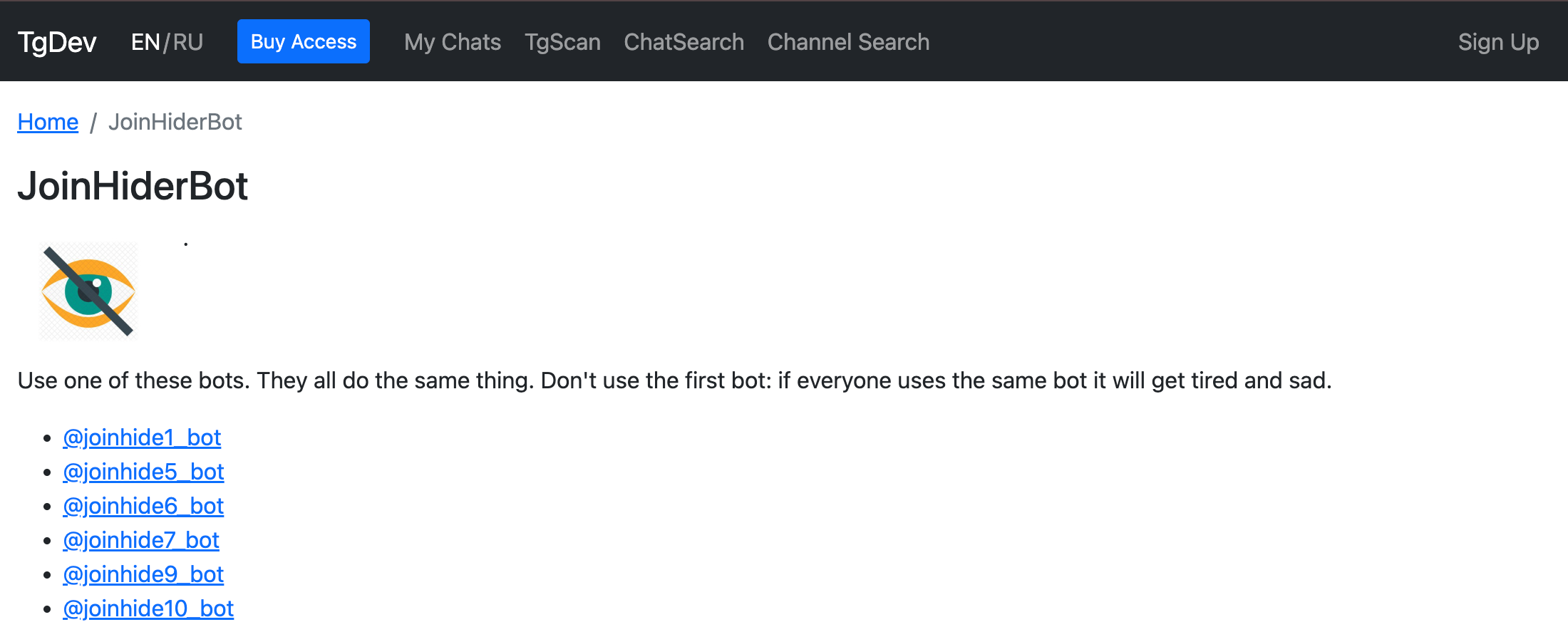 As you can see, it's almost isolated from the rest of the graphs - the only edge going out of it's orbit is the @joinhide5_bot, which was later used by lots of chats that seemed completely unrelated to this one (we'll talk about bots later).