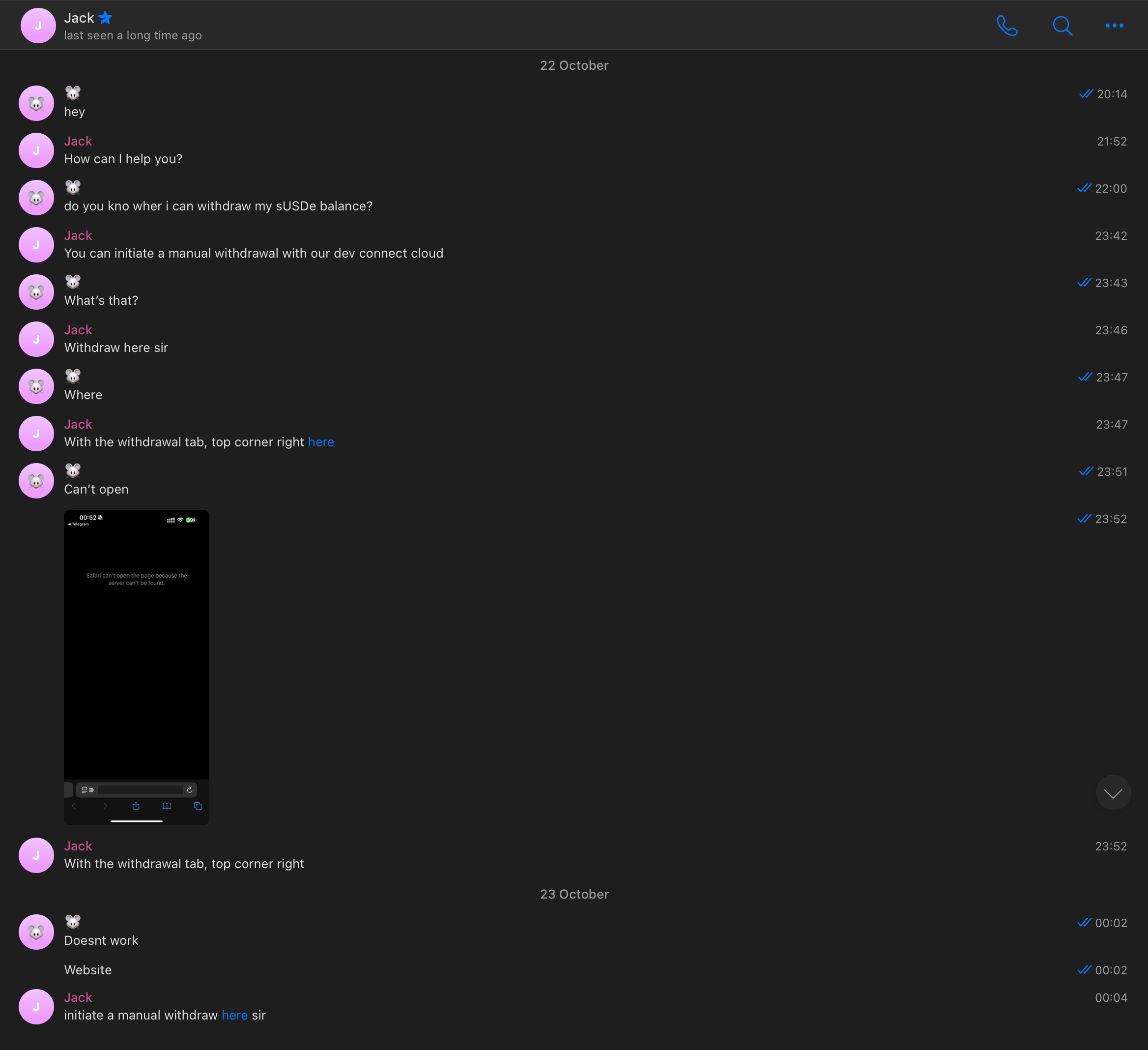 Since then we've been actively looking into this scheme, trying to find as many fake chats and phishing websites involved in it and report them using SEAL channels, which was quite successful.