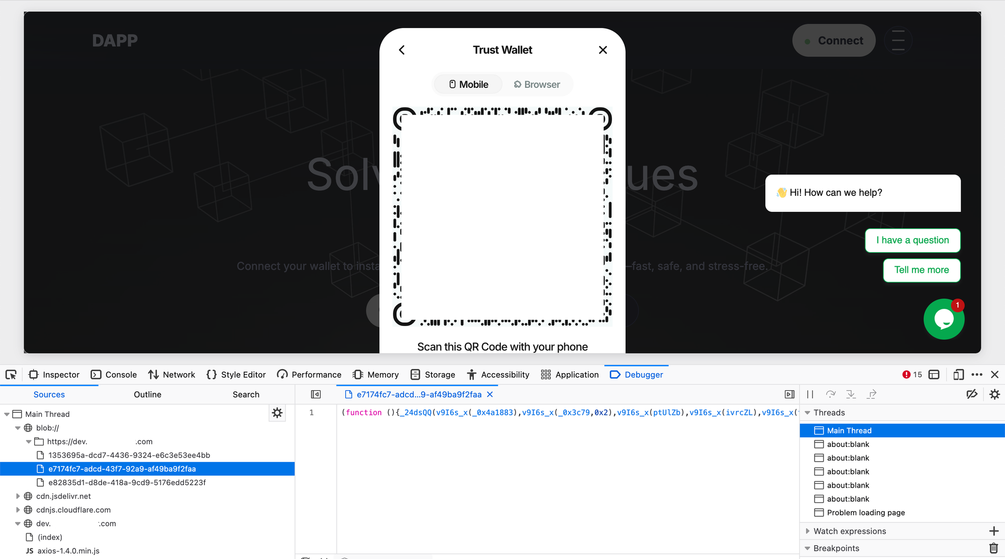 So, originally, I was trying to find the js code used to load the drainer - at that point I didn't know it's breed or pretty much anything about it, apart from it using the legit reown sdk for wallet connection.
