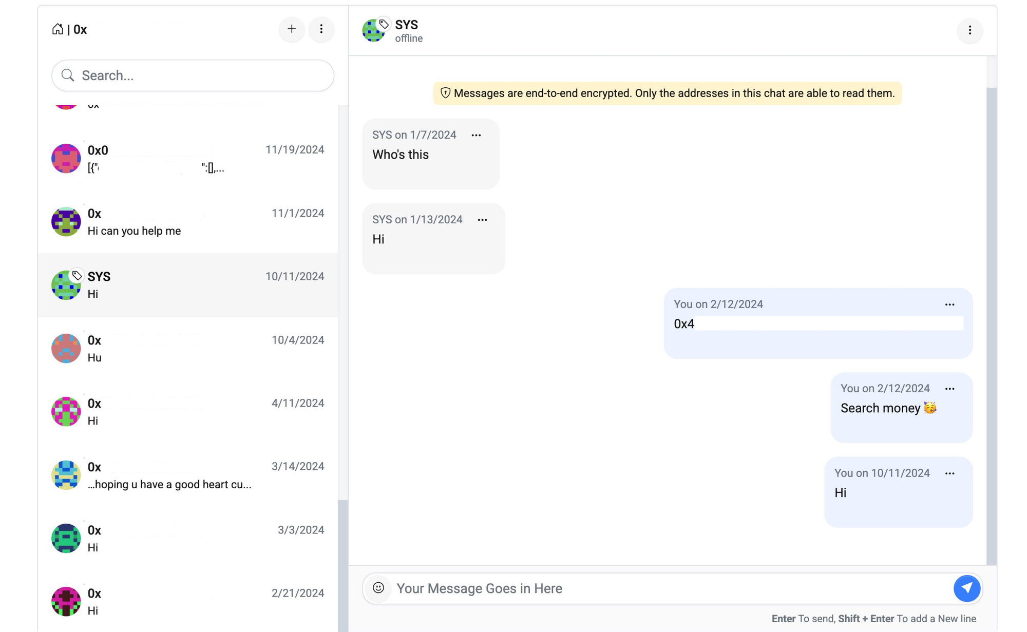 Imagine our surprise when we logged those wallets in, opened chat.blockscan.com and found a bunch of chats there, dating back to 2024.